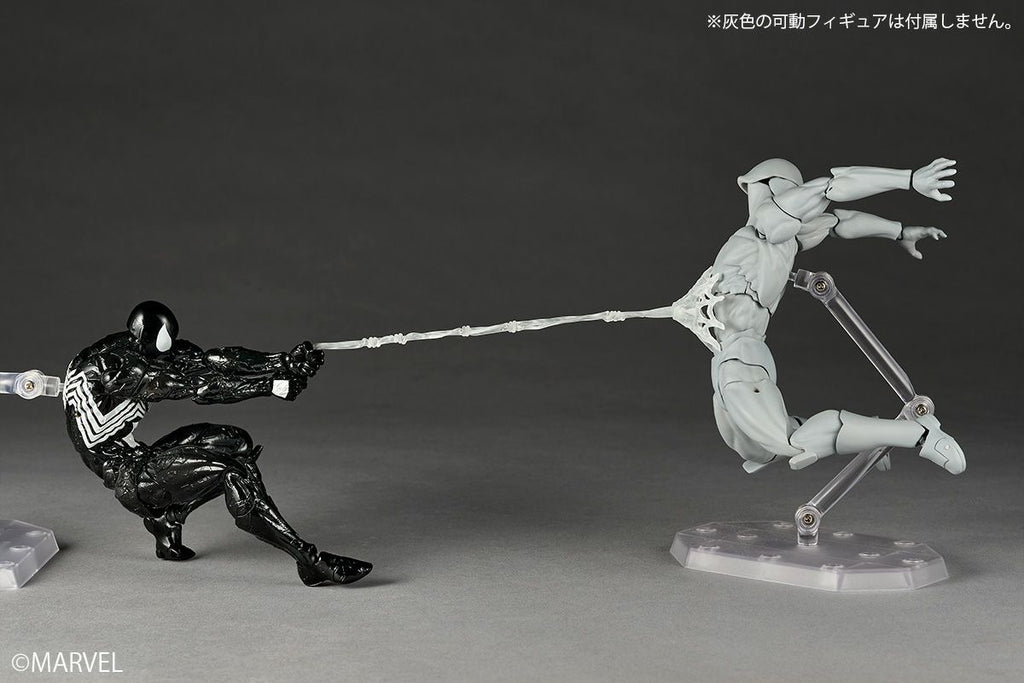 Witness the transformation of Spider-Man through the symbiote suit—a cosmic entity that amplifies his abilities while threatening to consume him entirely. This Amazing Yamaguchi Revoltech figure captures the menacing elegance of the black suit with meticulously crafted organic texturing that wraps around every contour. The collection includes six interchangeable hands, an alternate angry expression, and dual symbiote attachments to showcase the suit's parasitic nature. Web accessories span multiple configurations: standard firing poses, magnetic variants for wall-pinning displays, and restraint pieces that demonstrate the symbiote's grappling prowess. A display stand ensures your figure commands attention on any shelf.